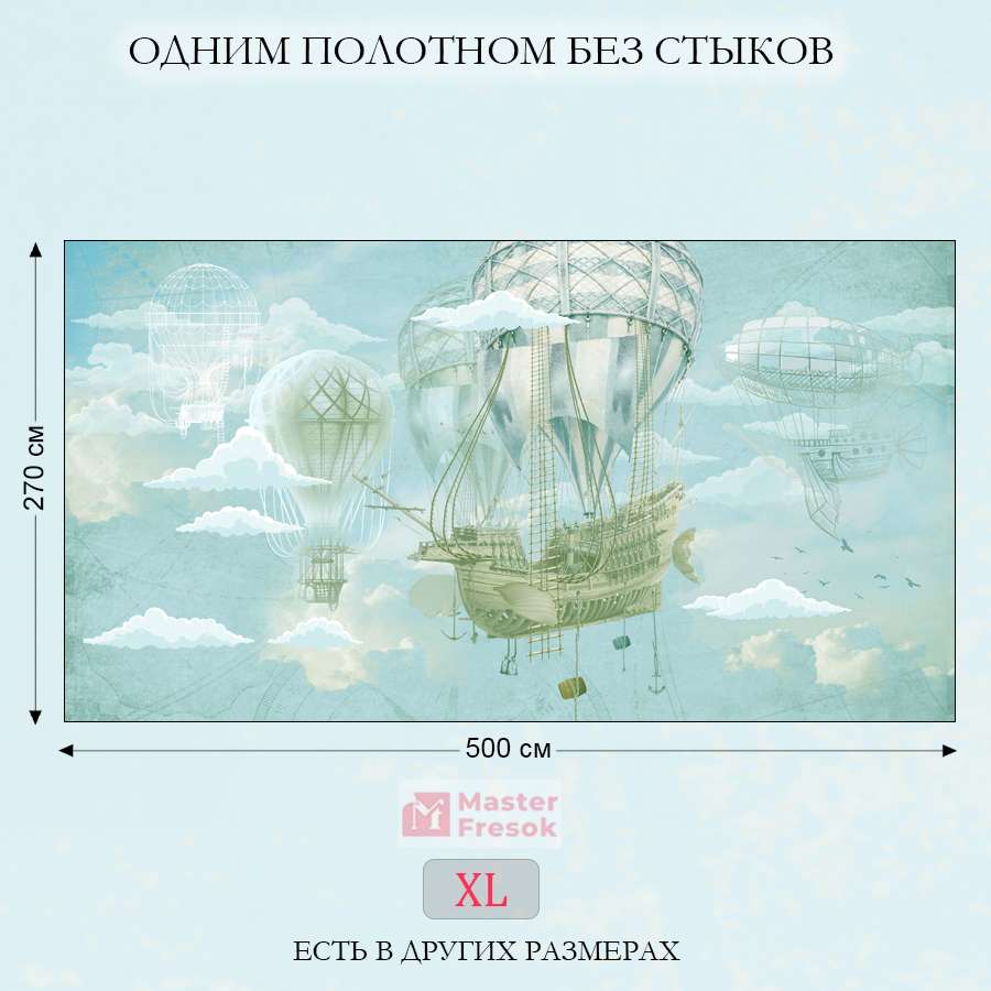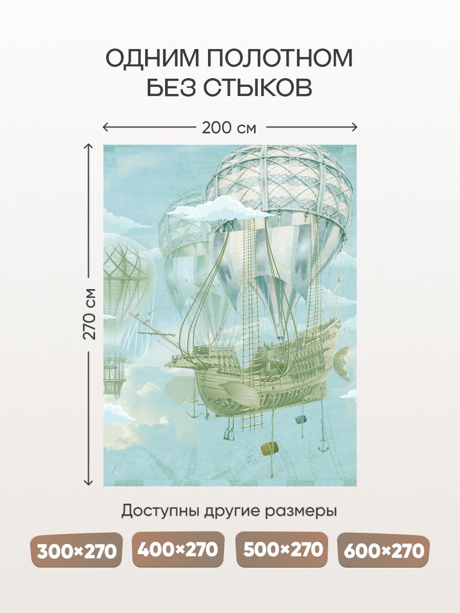 Бесшовные фотообои Воздушный корабль , артикул 13-171, прекрасно подойдут к любому помещению: в гостиную, в спальню, в кухню или в детскую и украсят ваш интерьер. Купить фотообои в интернет магазине MasterFresok можно в нескольких типовых размерах:
