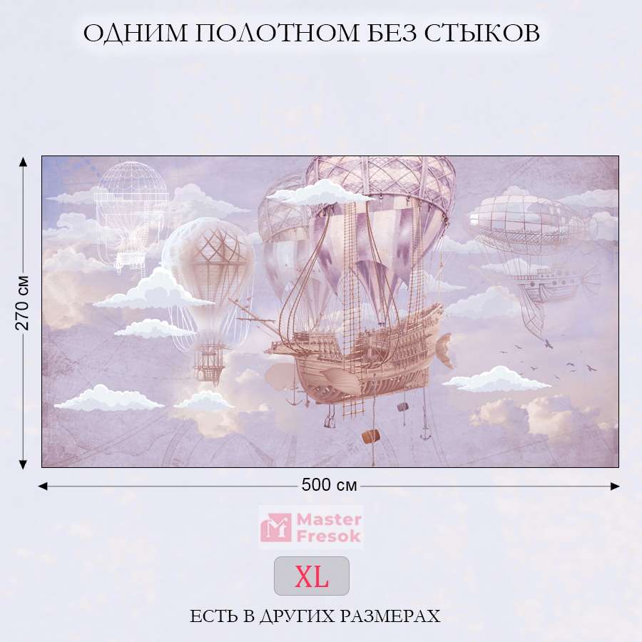 Бесшовные фотообои Корабль в небе , артикул 13-172, прекрасно подойдут к любому помещению: в гостиную, в спальню, в кухню или в детскую и украсят ваш интерьер. Купить фотообои в интернет магазине MasterFresok можно в нескольких типовых размерах: