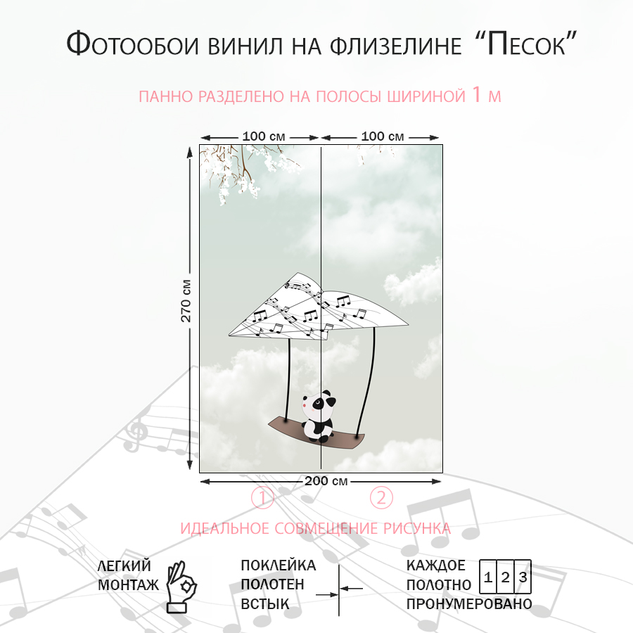 Бесшовные фотообои Музыкальные панды , артикул 14-602, прекрасно подойдут к любому помещению: в гостиную, в спальню, в кухню или в детскую и украсят ваш интерьер. Купить фотообои в интернет магазине MasterFresok можно в нескольких типовых размерах: