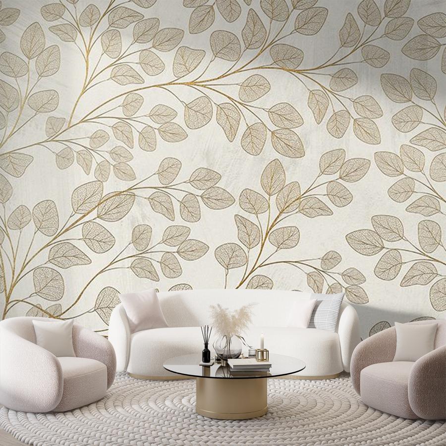 Фотообои в спальню Листочки на бежевом фоне 9-1981-S-Холст