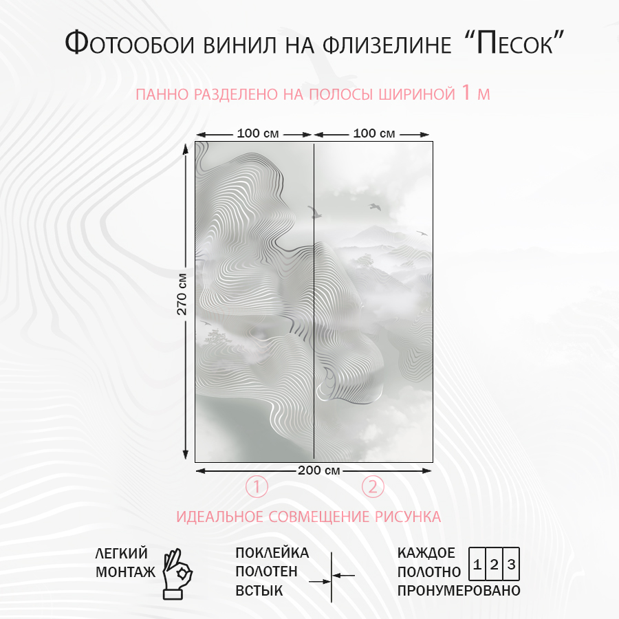 ✅ Фотообои изготовлены на одном полотне, без стыков. ✅ Плотные, флизелиновые, износостойкие, экологически безопасные, имеют однородную матовую поверхность, плотность материалов обоев от 250 г/м. ✅ Доступна легкая влажная уборка. ✅ Обои имеют отличную цветопередачу и детализацию изображений. ✅ Фотообои легко и быстро можно клеить на очень большие поверхности. ✅ Для монтажа подойдет любой клей для флизелиновых обоев. ✅ Быстрая доставка осуществляется в плотном картонном тубусе с дополнительным усилением.
