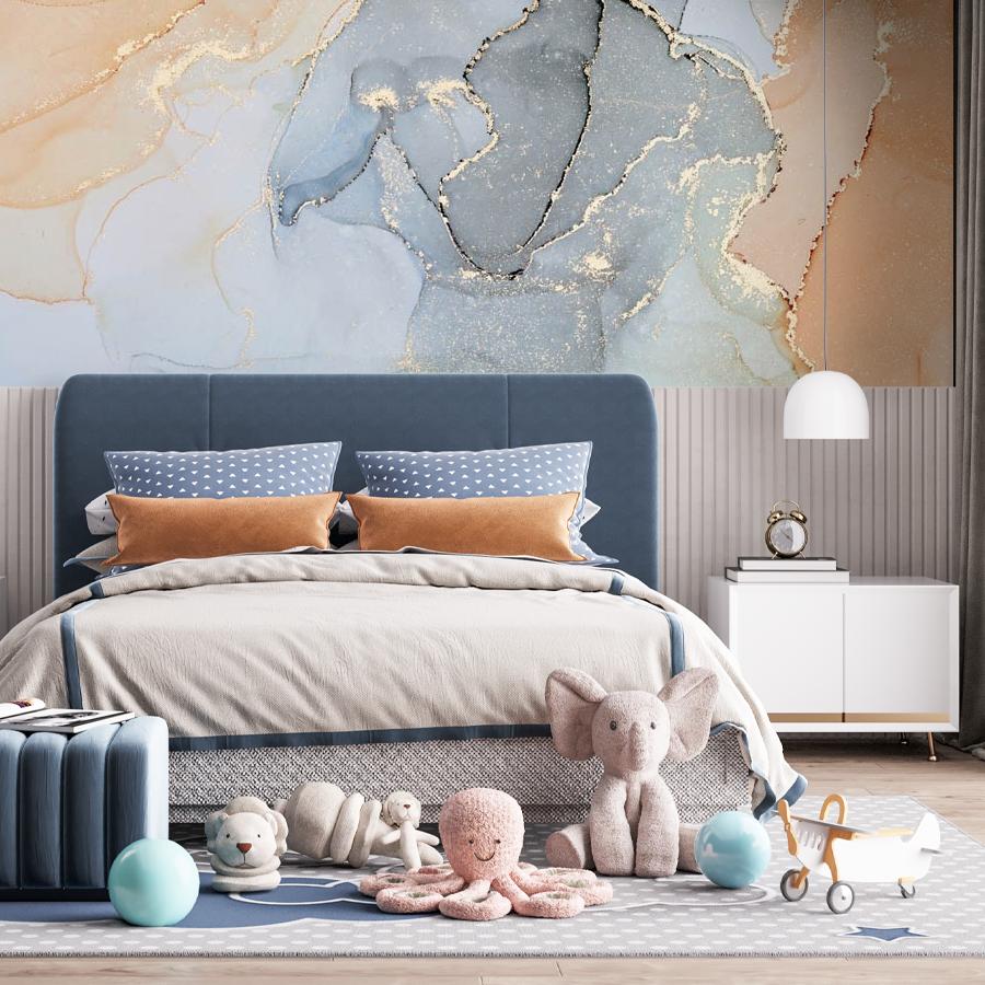 Бесшовные фотообои Золотые разводы флюида, артикул 9-1525, прекрасно подойдут к любому помещению: в гостиную, в спальню, в кухню или в детскую и украсят ваш интерьер. Купить фотообои в интернет магазине MasterFresok можно в нескольких типовых размерах: