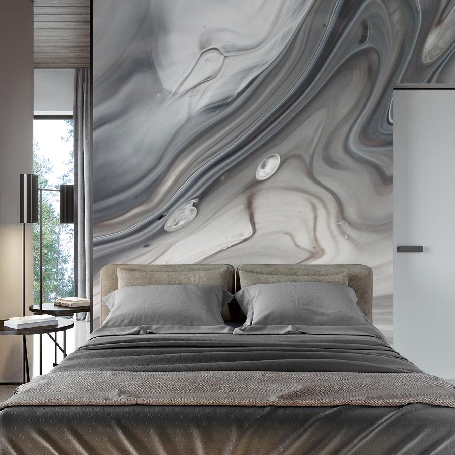 Бесшовные фотообои Серый флюид арт, артикул 9-1535, прекрасно подойдут к любому помещению: в гостиную, в спальню, в кухню или в детскую и украсят ваш интерьер. Купить фотообои в интернет магазине MasterFresok можно в нескольких типовых размерах: