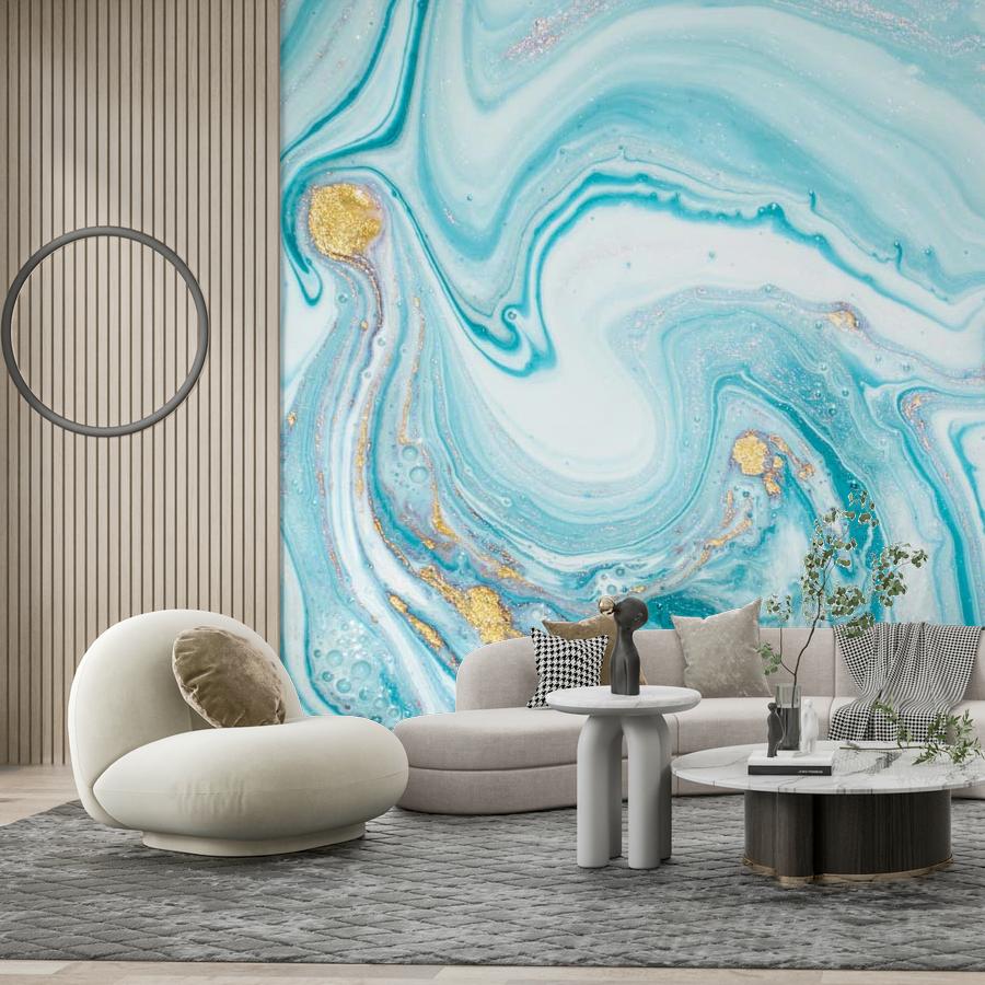 Бесшовные фотообои Флюид Арт - Голубой океан, артикул 9-935, прекрасно подойдут к любому помещению: в гостиную, в спальню, в кухню или в детскую и украсят ваш интерьер. Купить фотообои в интернет магазине MasterFresok можно в нескольких типовых размерах:
