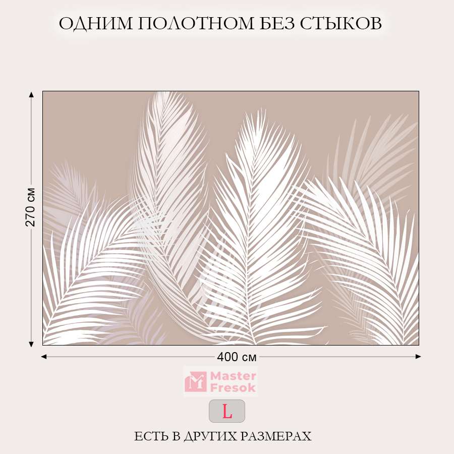 Бесшовные фотообои Белый папоротник на бежевом фоне, артикул 13-056, прекрасно подойдут к любому помещению: в гостиную, в спальню, в кухню или в детскую и украсят ваш интерьер. Купить фотообои в интернет магазине MasterFresok можно в нескольких типовых размерах: