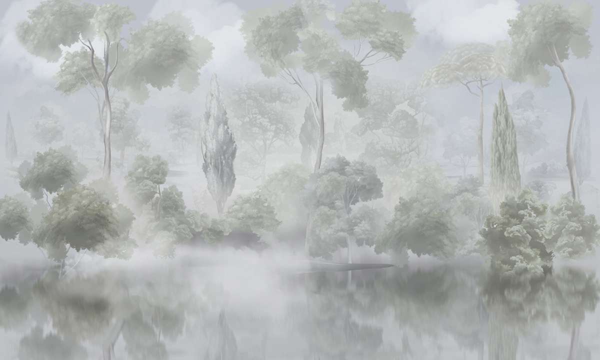 Фотообои Озеро 3д с деревьями 13-1056-S-Холст