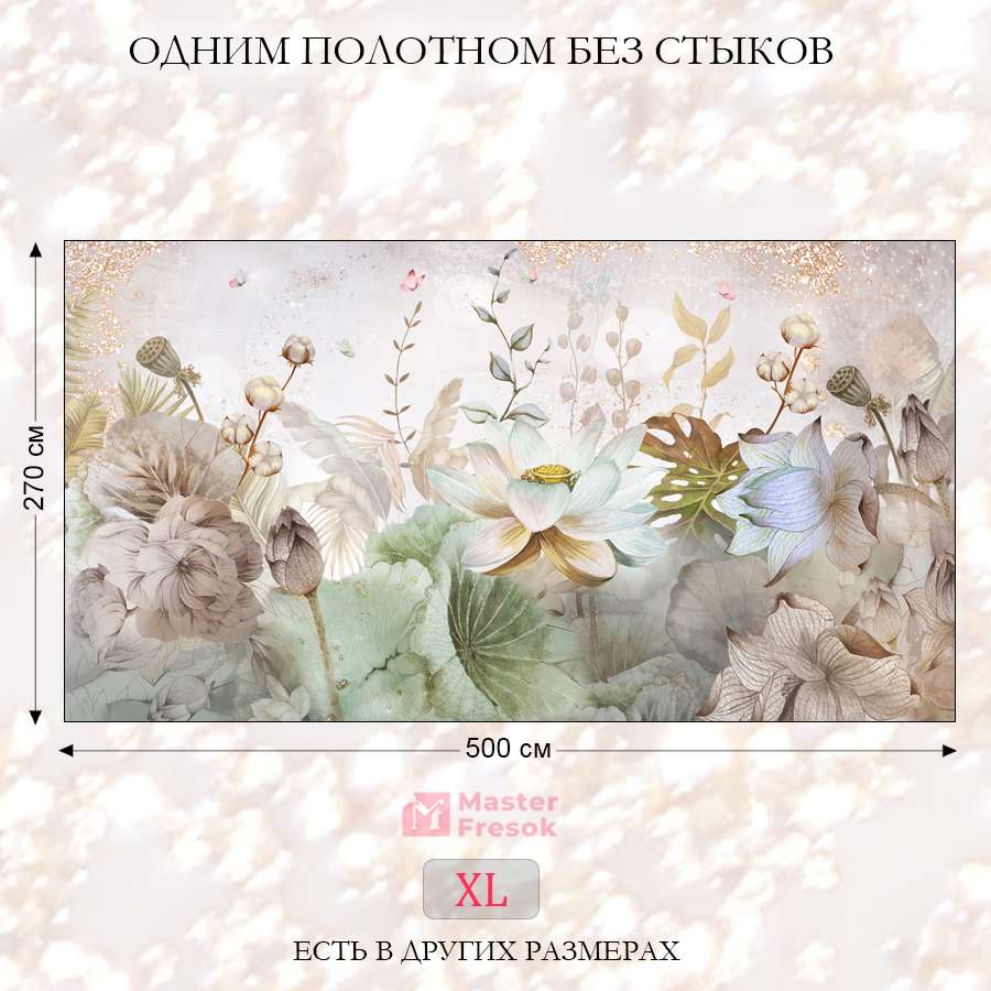 Бесшовные фотообои Лотос на полянке, артикул 13-380, прекрасно подойдут к любому помещению: в гостиную, в спальню, в кухню или в детскую и украсят ваш интерьер. Купить фотообои в интернет магазине MasterFresok можно в нескольких типовых размерах: