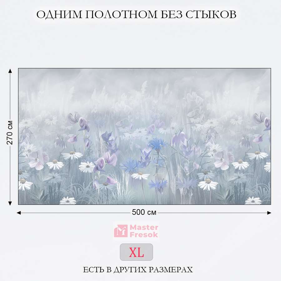 Бесшовные фотообои Цветочная поляна, артикул 13-382, прекрасно подойдут к любому помещению: в гостиную, в спальню, в кухню или в детскую и украсят ваш интерьер. Купить фотообои в интернет магазине MasterFresok можно в нескольких типовых размерах: