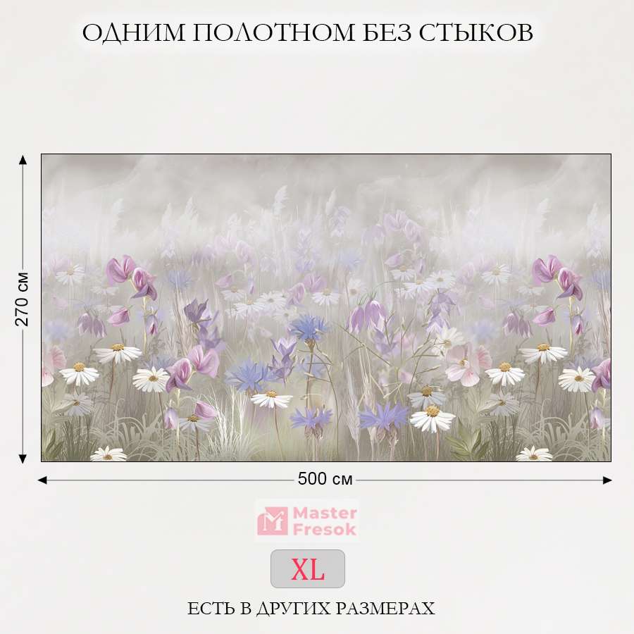 Бесшовные фотообои Луговые цветы, артикул 13-383, прекрасно подойдут к любому помещению: в гостиную, в спальню, в кухню или в детскую и украсят ваш интерьер. Купить фотообои в интернет магазине MasterFresok можно в нескольких типовых размерах:
