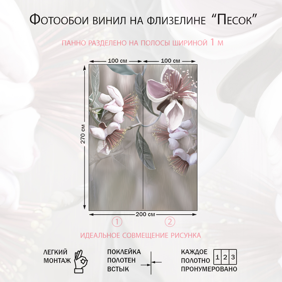 ✅ Фотообои изготовлены на одном полотне, без стыков. ✅ Плотные, флизелиновые, износостойкие, экологически безопасные, имеют однородную матовую поверхность, плотность материалов обоев от 250 г/м. ✅ Доступна легкая влажная уборка. ✅ Обои имеют отличную цветопередачу и детализацию изображений. ✅ Фотообои легко и быстро можно клеить на очень большие поверхности. ✅ Для монтажа подойдет любой клей для флизелиновых обоев. ✅ Быстрая доставка осуществляется в плотном картонном тубусе с дополнительным усилением.