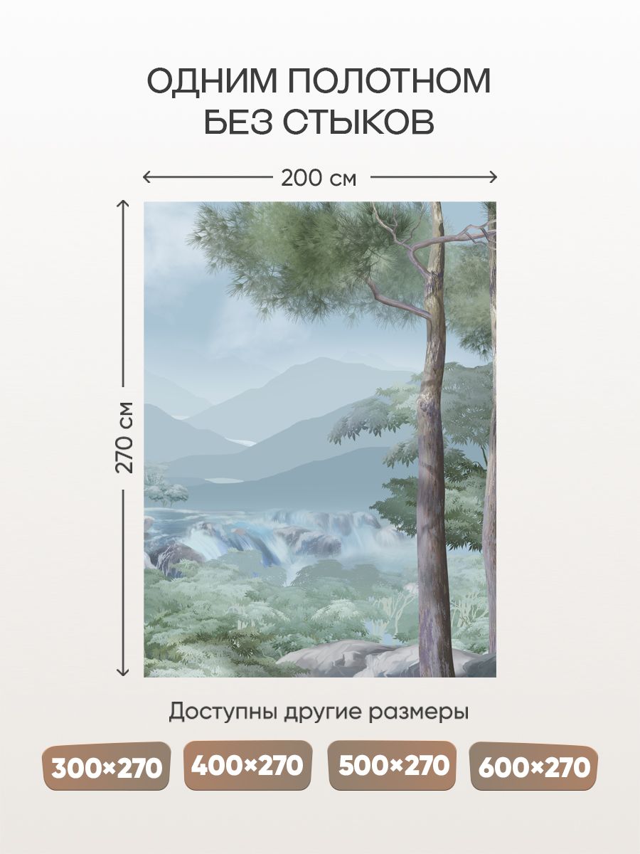Бесшовные фотообои Туманный сосновый лес в горах, артикул 13-866, прекрасно подойдут к любому помещению: в гостиную, в спальню, в кухню или в детскую и украсят ваш интерьер. Купить фотообои в интернет магазине MasterFresok можно в нескольких типовых размерах: