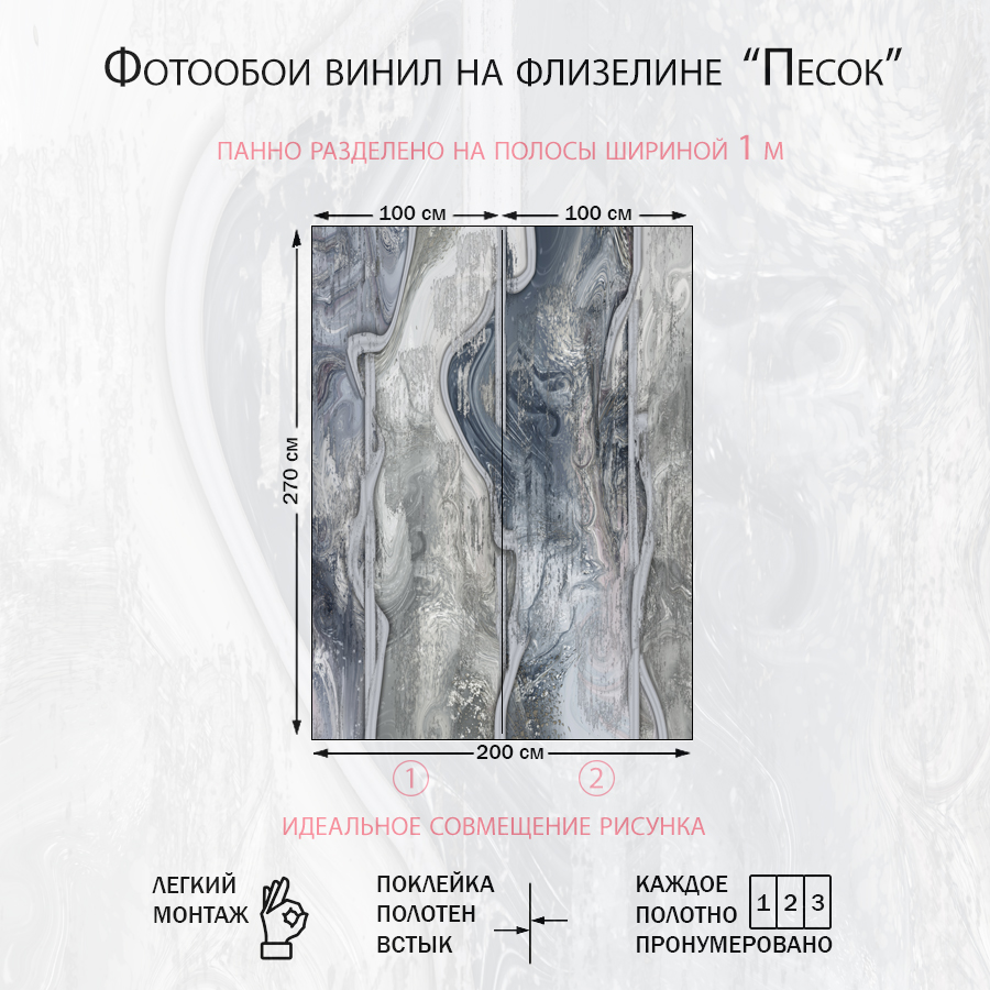 Фотообои Песок: плотность 200 г/м²; толщина 0,3 мм; светостойкие ✅; ширина полос 1м ✅; легкий монтаж ✅; срок службы: более 5 лет; легкий рельеф песка; легкая влажная уборка ✅