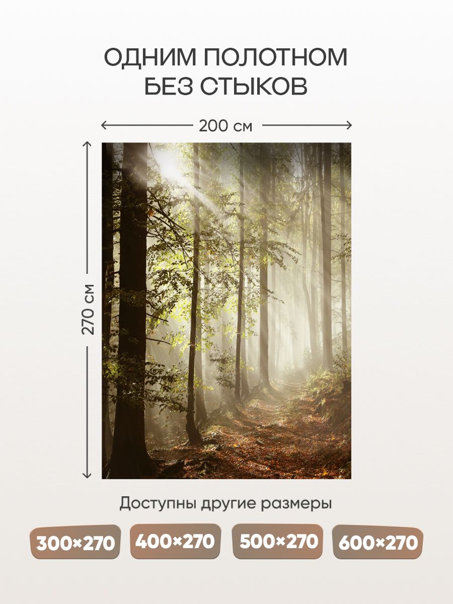 Бесшовные фотообои Осенний туманный лес , артикул 13-880, прекрасно подойдут к любому помещению: в гостиную, в спальню, в кухню или в детскую и украсят ваш интерьер. Купить фотообои в интернет магазине MasterFresok можно в нескольких типовых размерах: