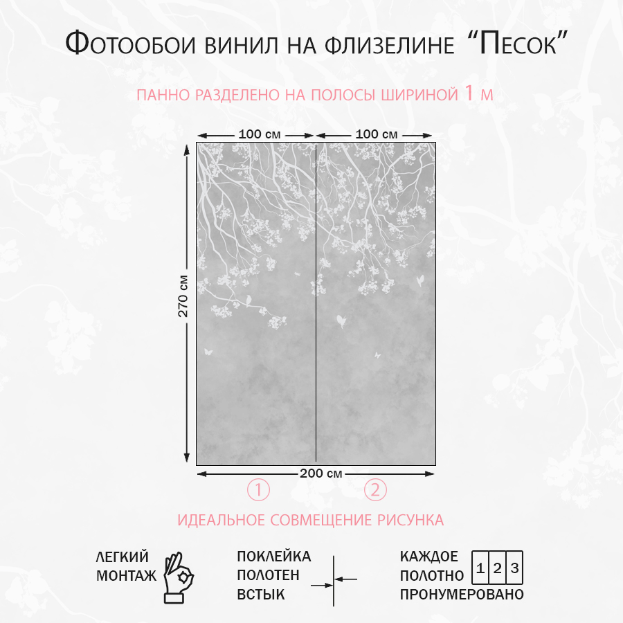 Бесшовные фотообои Белые веточки на сером, артикул 13-909, прекрасно подойдут к любому помещению: в гостиную, в спальню, в кухню или в детскую и украсят ваш интерьер. Купить фотообои в интернет магазине MasterFresok можно в нескольких типовых размерах: