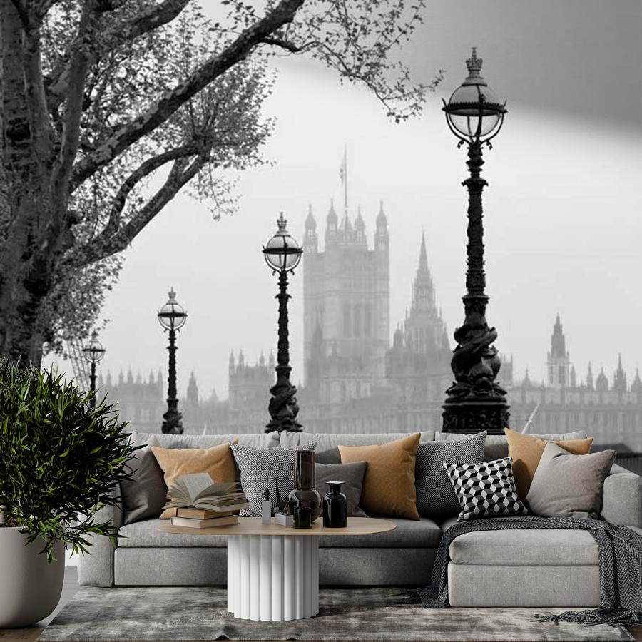 Фотообои Лондон черно белая улица в дымке 9-473-S-Холст