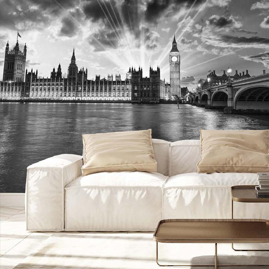 Бесшовные фотообои Лучи солнца в небе над Лондоном, артикул 9-496, прекрасно подойдут к любому помещению: в гостиную, в спальню, в кухню или в детскую и украсят ваш интерьер. Купить фотообои в интернет магазине MasterFresok можно в нескольких типовых размерах: