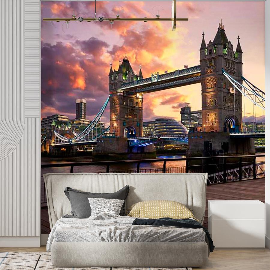 Бесшовные фотообои Вечерняя набережная Лондона, артикул 9-538, прекрасно подойдут к любому помещению: в гостиную, в спальню, в кухню или в детскую и украсят ваш интерьер. Купить фотообои в интернет магазине MasterFresok можно в нескольких типовых размерах: