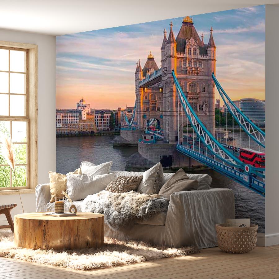 Бесшовные фотообои Тауэрский мост в утренние часы, артикул 9-563, прекрасно подойдут к любому помещению: в гостиную, в спальню, в кухню или в детскую и украсят ваш интерьер. Купить фотообои в интернет магазине MasterFresok можно в нескольких типовых размерах: