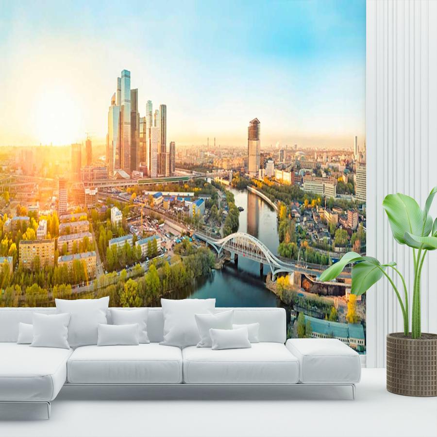 Бесшовные фотообои Вид с балкона на Москва Сити, артикул 9-418, прекрасно подойдут к любому помещению: в гостиную, в спальню, в кухню или в детскую и украсят ваш интерьер. Купить фотообои в интернет магазине MasterFresok можно в нескольких типовых размерах: