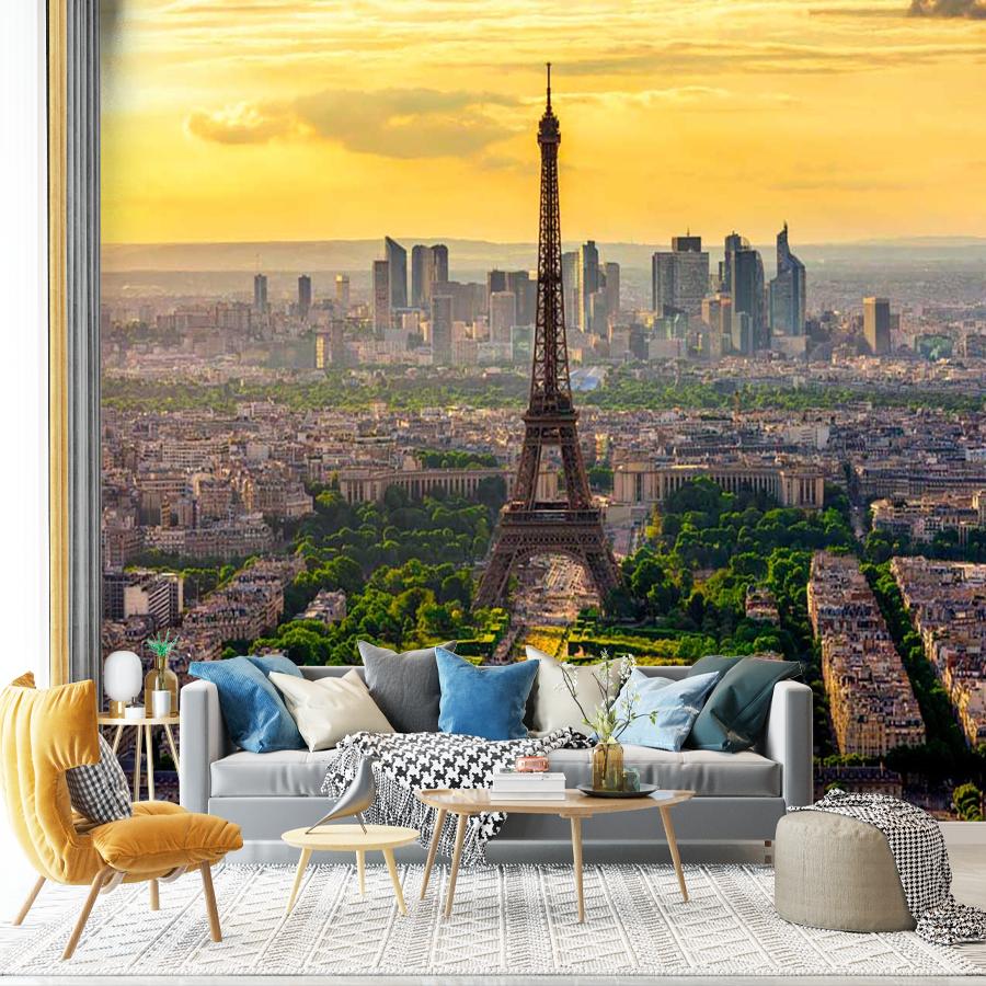 Бесшовные фотообои Вид на Париж ранним утром, артикул 9-724, прекрасно подойдут к любому помещению: в гостиную, в спальню, в кухню или в детскую и украсят ваш интерьер. Купить фотообои в интернет магазине MasterFresok можно в нескольких типовых размерах: