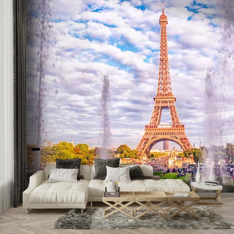 Бесшовные фотообои Фонтаны у Эйфелевой башни, артикул 9-742, прекрасно подойдут к любому помещению: в гостиную, в спальню, в кухню или в детскую и украсят ваш интерьер. Купить фотообои в интернет магазине MasterFresok можно в нескольких типовых размерах: