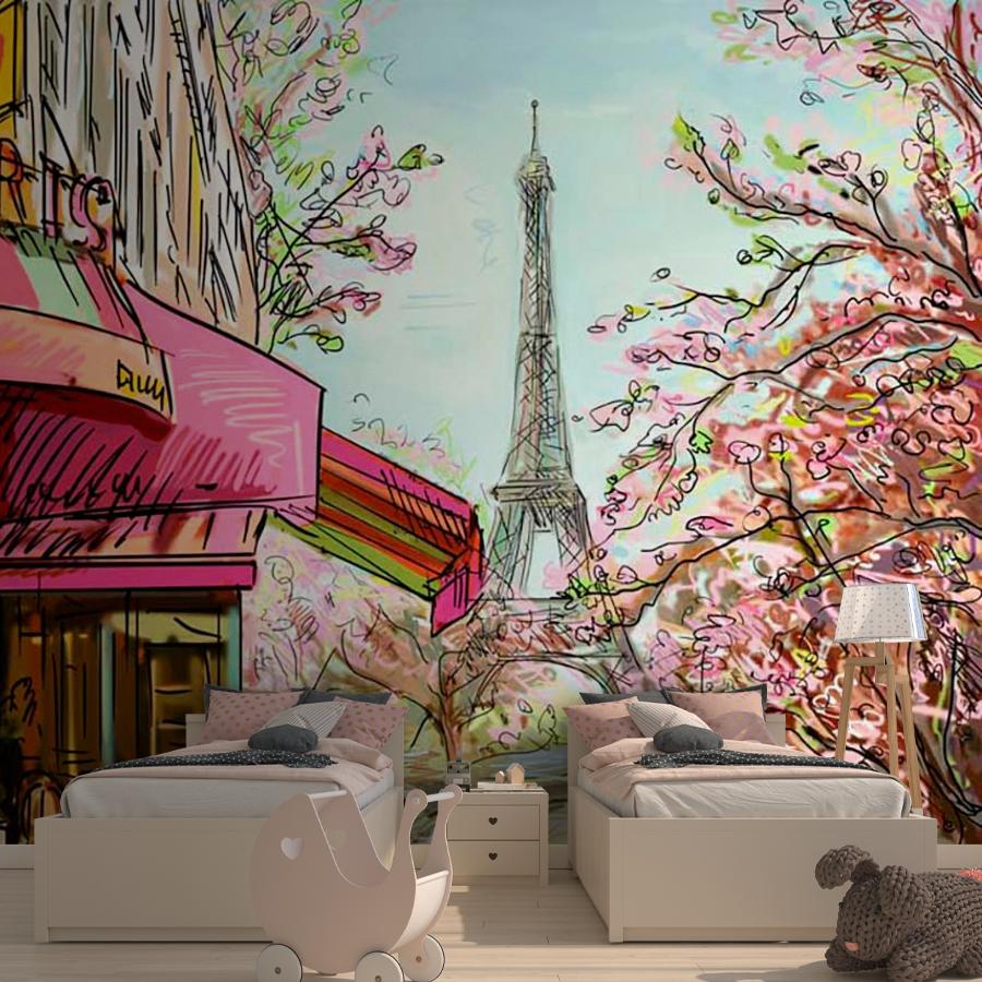 Бесшовные фотообои Кафе в Париже карандашами, артикул 9-773, прекрасно подойдут к любому помещению: в гостиную, в спальню, в кухню или в детскую и украсят ваш интерьер. Купить фотообои в интернет магазине MasterFresok можно в нескольких типовых размерах: