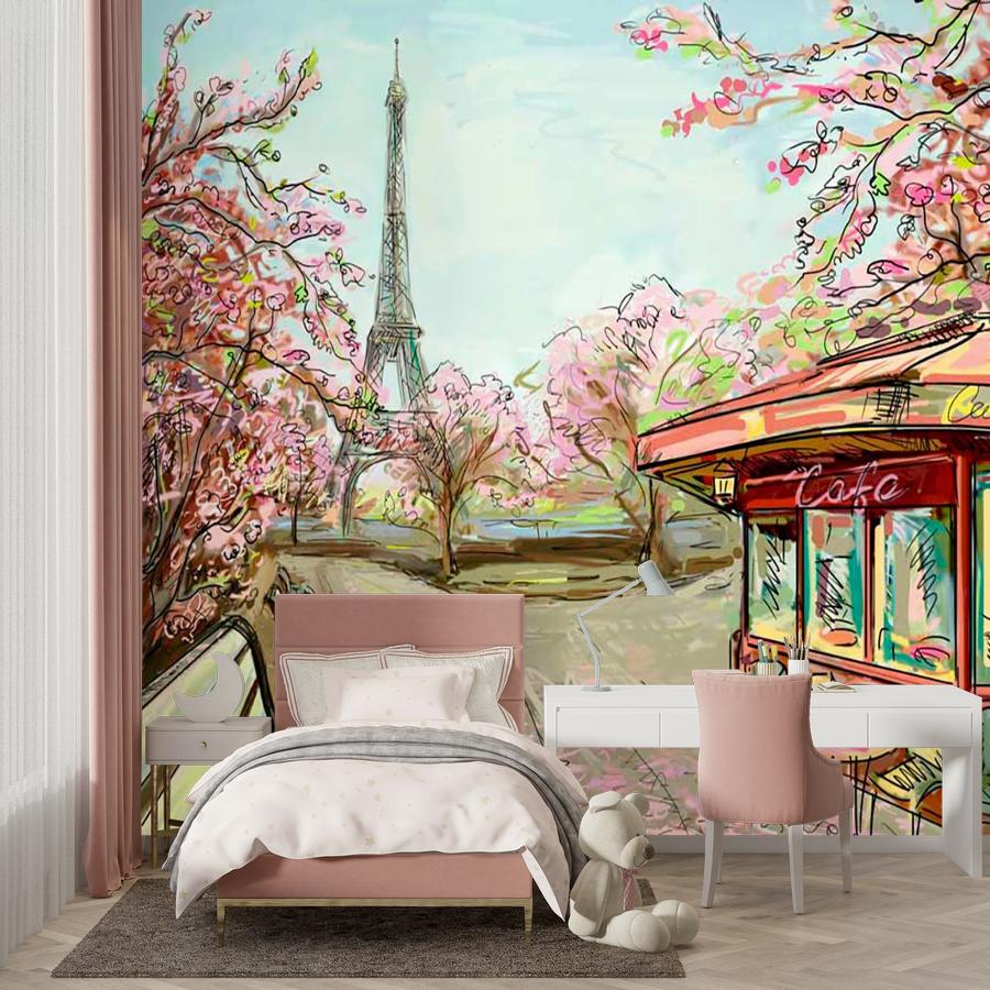 Бесшовные фотообои Улочка в Париже с видом на эйфелеву башню карандашами, артикул 9-774, прекрасно подойдут к любому помещению: в гостиную, в спальню, в кухню или в детскую и украсят ваш интерьер. Купить фотообои в интернет магазине MasterFresok можно в нескольких типовых размерах: