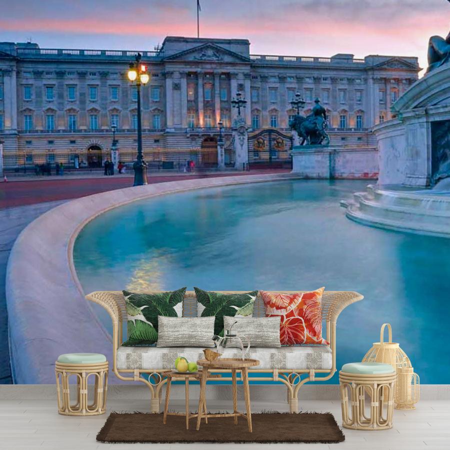 Бесшовные фотообои Букингемский дворец, артикул 9-628, прекрасно подойдут к любому помещению: в гостиную, в спальню, в кухню или в детскую и украсят ваш интерьер. Купить фотообои в интернет магазине MasterFresok можно в нескольких типовых размерах:
