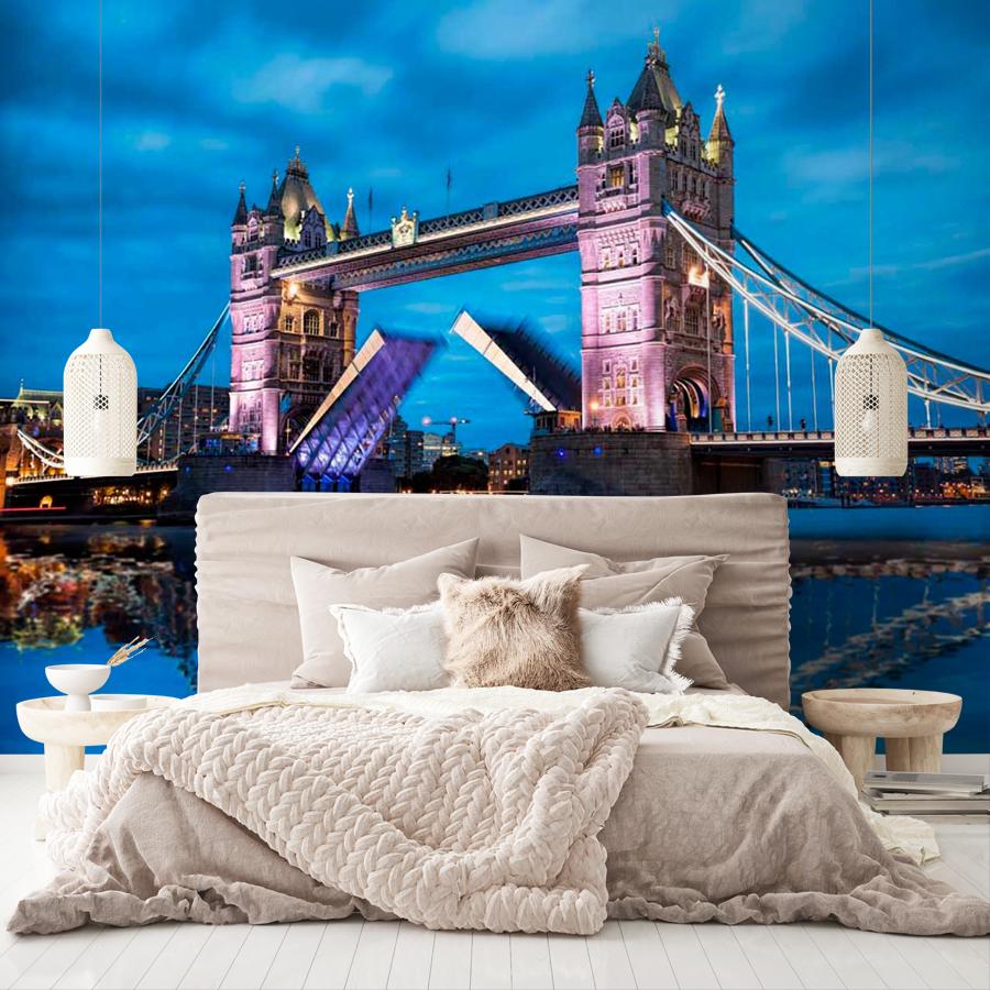 Бесшовные фотообои Тауэрский мост в ночи, артикул 9-678, прекрасно подойдут к любому помещению: в гостиную, в спальню, в кухню или в детскую и украсят ваш интерьер. Купить фотообои в интернет магазине MasterFresok можно в нескольких типовых размерах: