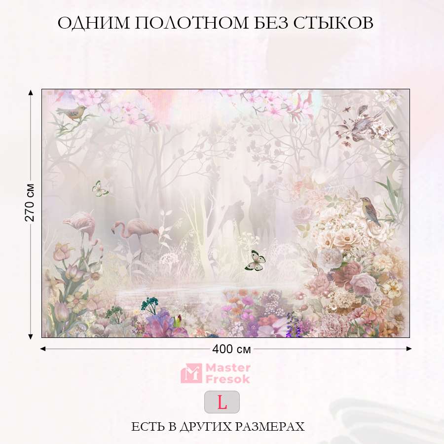 Бесшовные фотообои Сказочный сад , артикул 13-134, прекрасно подойдут к любому помещению: в гостиную, в спальню, в кухню или в детскую и украсят ваш интерьер. Купить фотообои в интернет магазине MasterFresok можно в нескольких типовых размерах: