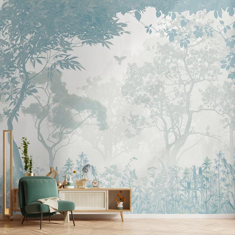 Бесшовные фотообои Лес в мятном цвете , артикул 9-1401, прекрасно подойдут к любому помещению: в гостиную, в спальню, в кухню или в детскую и украсят ваш интерьер. Купить фотообои в интернет магазине MasterFresok можно в нескольких типовых размерах: