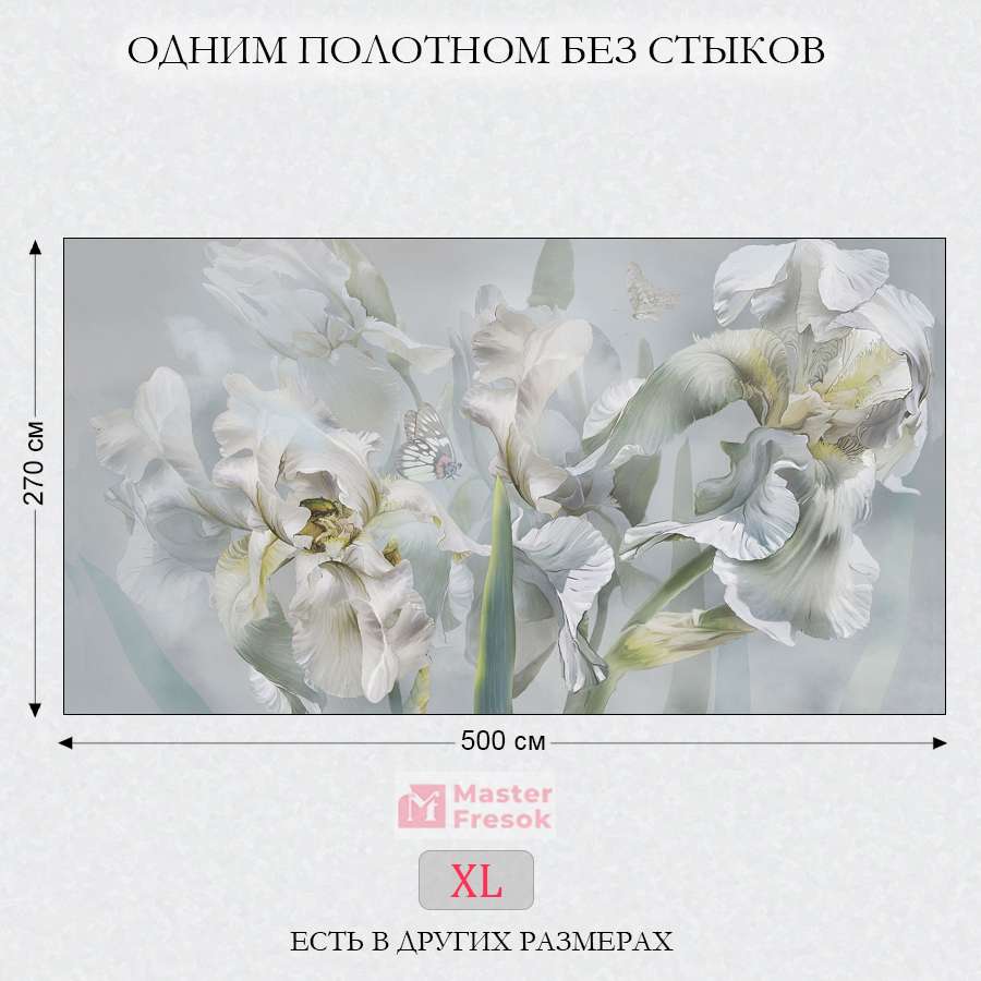 Бесшовные фотообои Белые ирисы , артикул 13-178, прекрасно подойдут к любому помещению: в гостиную, в спальню, в кухню или в детскую и украсят ваш интерьер. Купить фотообои в интернет магазине MasterFresok можно в нескольких типовых размерах: