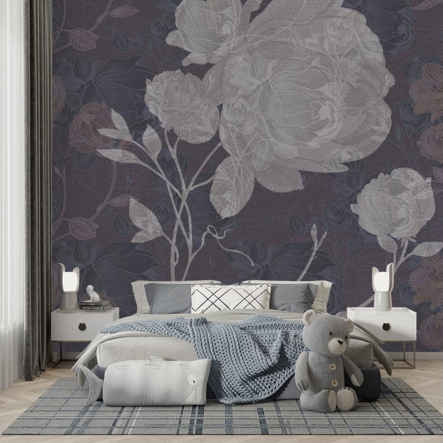 Фотообои Белые пионы на бордовом фоне 9-1244-S-Холст