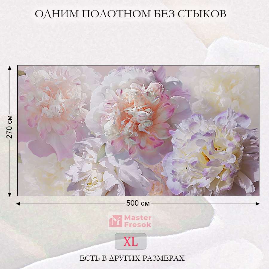 Бесшовные фотообои Пионы нежные 3д, артикул 13-229, прекрасно подойдут к любому помещению: в гостиную, в спальню, в кухню или в детскую и украсят ваш интерьер. Купить фотообои в интернет магазине MasterFresok можно в нескольких типовых размерах:
