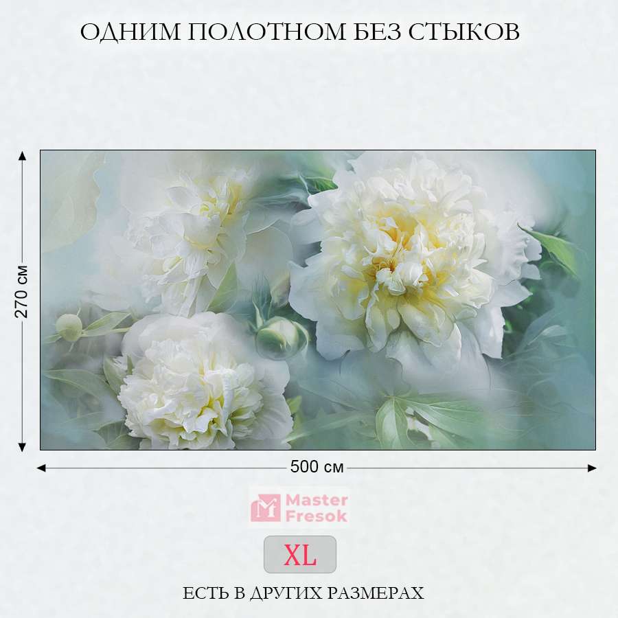 Бесшовные фотообои Пион 3д в дымке, артикул 13-240, прекрасно подойдут к любому помещению: в гостиную, в спальню, в кухню или в детскую и украсят ваш интерьер. Купить фотообои в интернет магазине MasterFresok можно в нескольких типовых размерах: