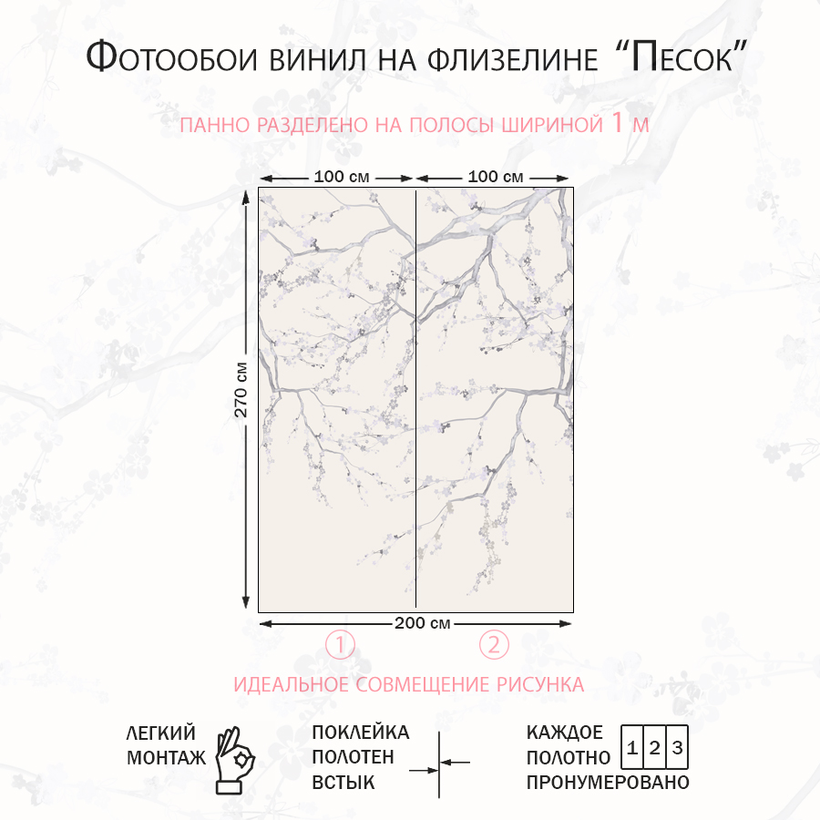 Фотообои Тонкие ветки сакуры 13-416-S-Песок
