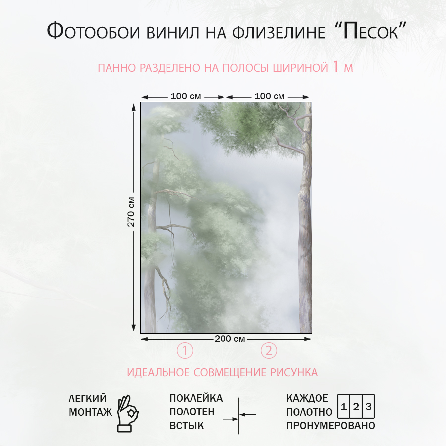 Бесшовные фотообои Сосны в тумане, артикул 13-510, прекрасно подойдут к любому помещению: в гостиную, в спальню, в кухню или в детскую и украсят ваш интерьер. Купить фотообои в интернет магазине MasterFresok можно в нескольких типовых размерах: