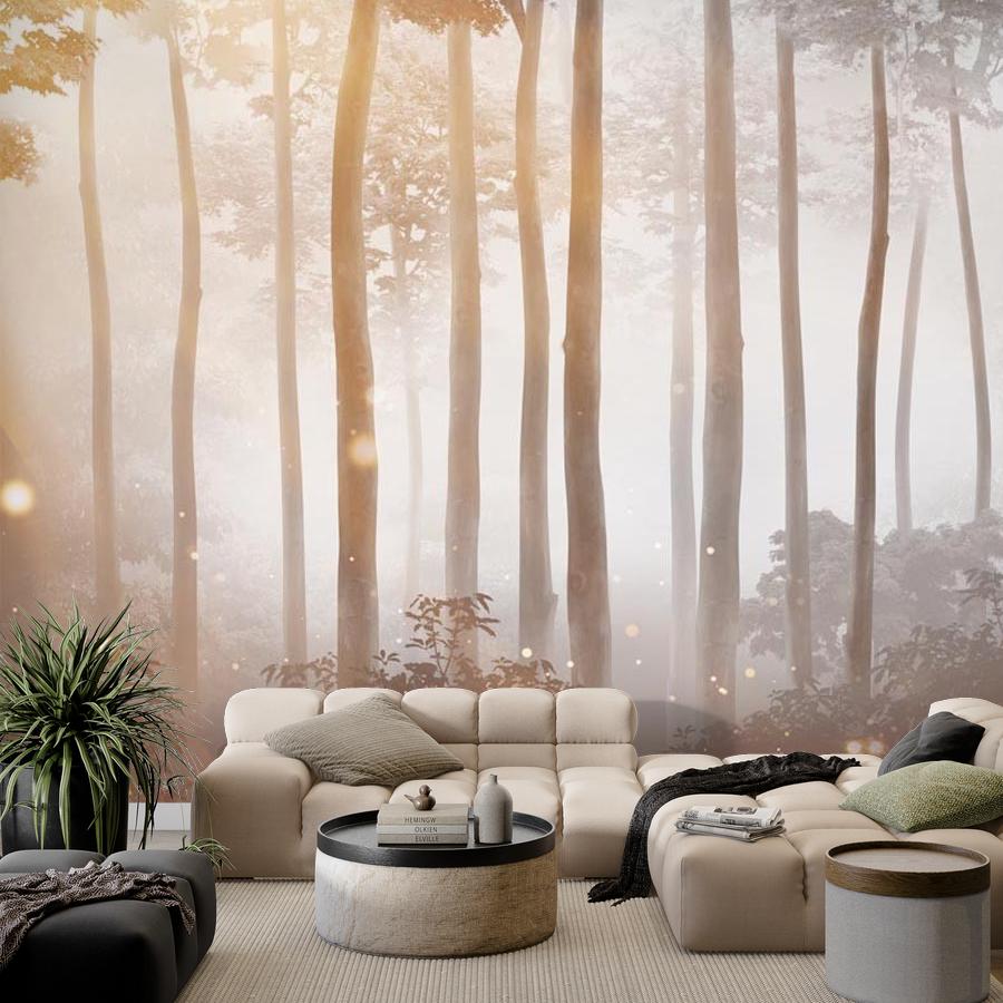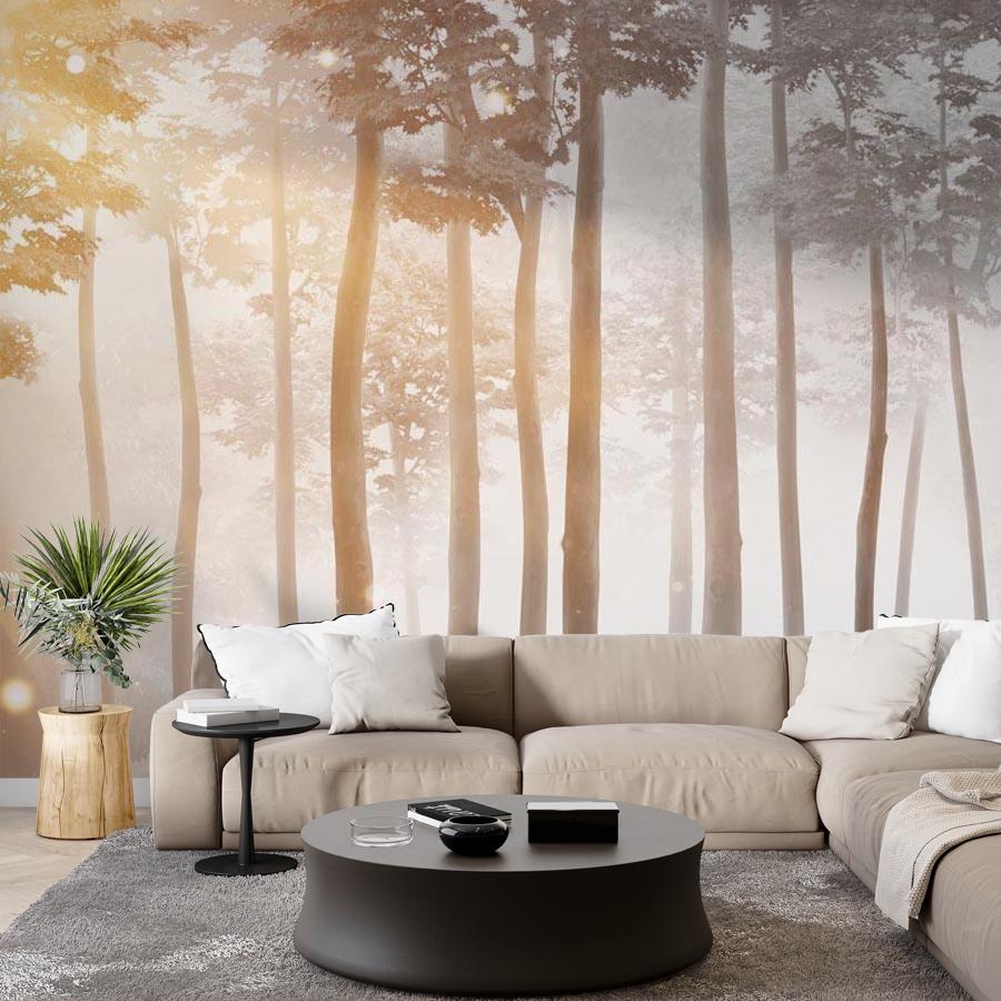 Бесшовные фотообои Лучи солнца в лесу , артикул 14-572, прекрасно подойдут к любому помещению: в гостиную, в спальню, в кухню или в детскую и украсят ваш интерьер. Купить фотообои в интернет магазине MasterFresok можно в нескольких типовых размерах:
