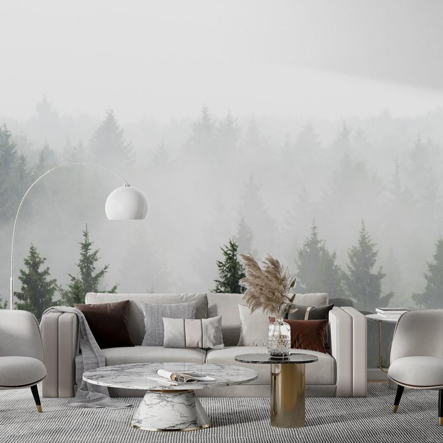 Бесшовные фотообои Туман в утреннем лесу, артикул 9-1215, прекрасно подойдут к любому помещению: в гостиную, в спальню, в кухню или в детскую и украсят ваш интерьер. Купить фотообои в интернет магазине MasterFresok можно в нескольких типовых размерах: