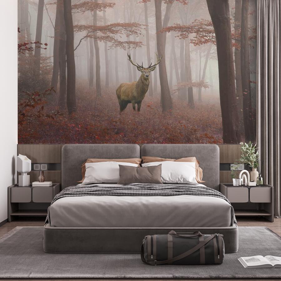 Бесшовные фотообои Осенний лес с оленем, артикул 9-1529, прекрасно подойдут к любому помещению: в гостиную, в спальню, в кухню или в детскую и украсят ваш интерьер. Купить фотообои в интернет магазине MasterFresok можно в нескольких типовых размерах: