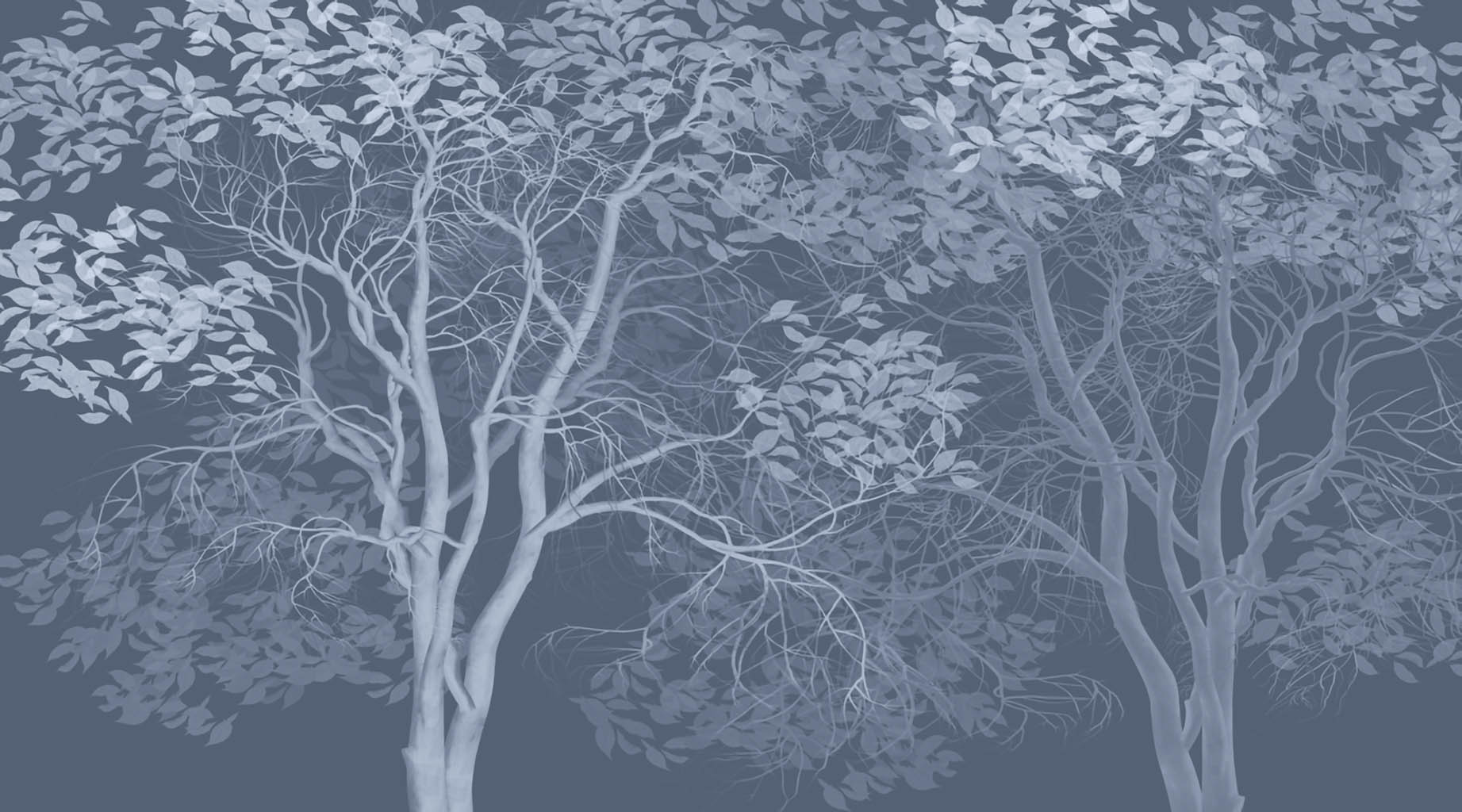 Фотообои Белые деревья на синем фоне 13-358-S-Холст