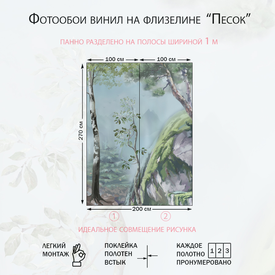 ✅ Фотообои изготовлены на одном полотне, без стыков. ✅ Плотные, флизелиновые, износостойкие, экологически безопасные, имеют однородную матовую поверхность, плотность материалов обоев от 250 г/м. ✅ Доступна легкая влажная уборка. ✅ Обои имеют отличную цветопередачу и детализацию изображений. ✅ Фотообои легко и быстро можно клеить на очень большие поверхности. ✅ Для монтажа подойдет любой клей для флизелиновых обоев. ✅ Быстрая доставка осуществляется в плотном картонном тубусе с дополнительным усилением.