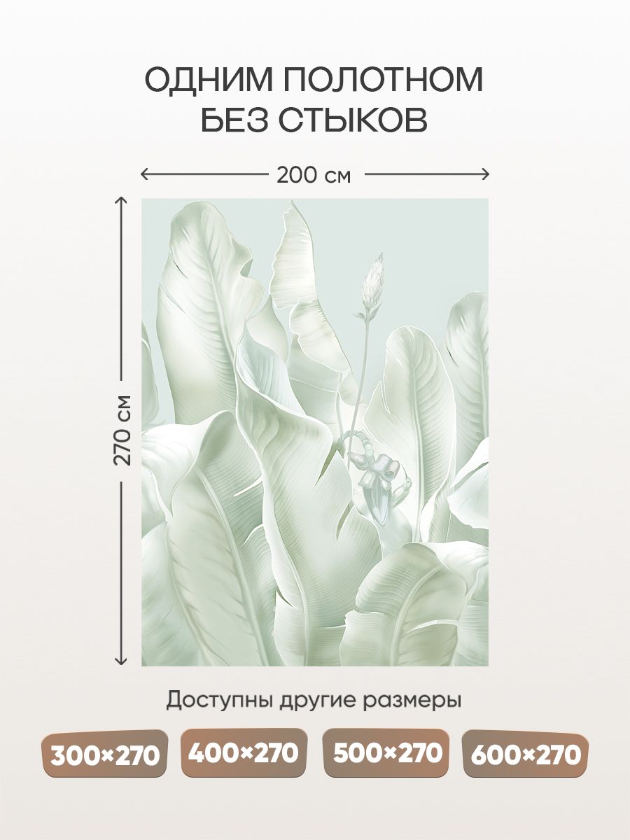 Бесшовные фотообои Листья банановой пальмы , артикул 13-562, прекрасно подойдут к любому помещению: в гостиную, в спальню, в кухню или в детскую и украсят ваш интерьер. Купить фотообои в интернет магазине MasterFresok можно в нескольких типовых размерах: