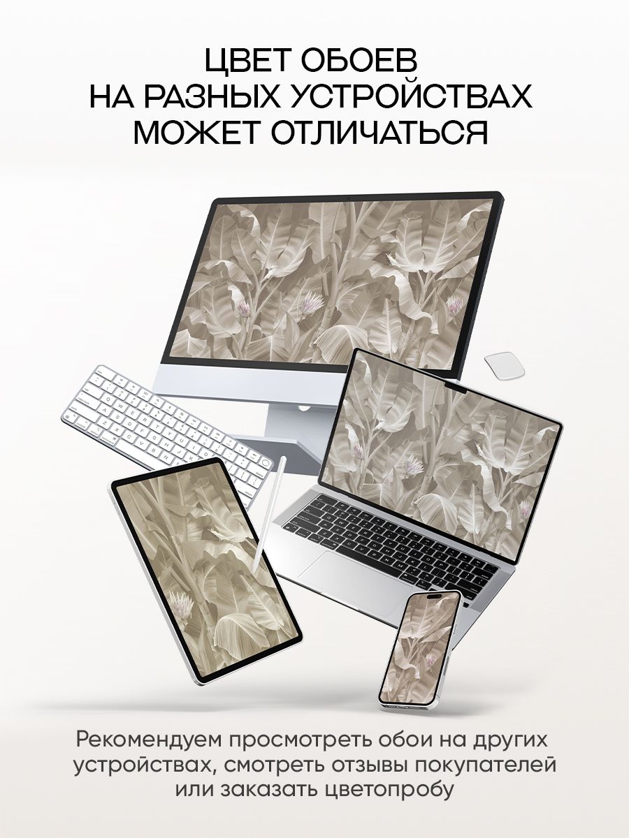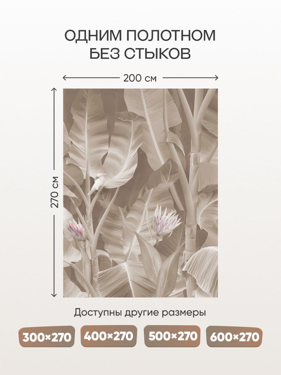 Фотообои в гостиную Тропические листья бежевый фон 13-666-S-Холст