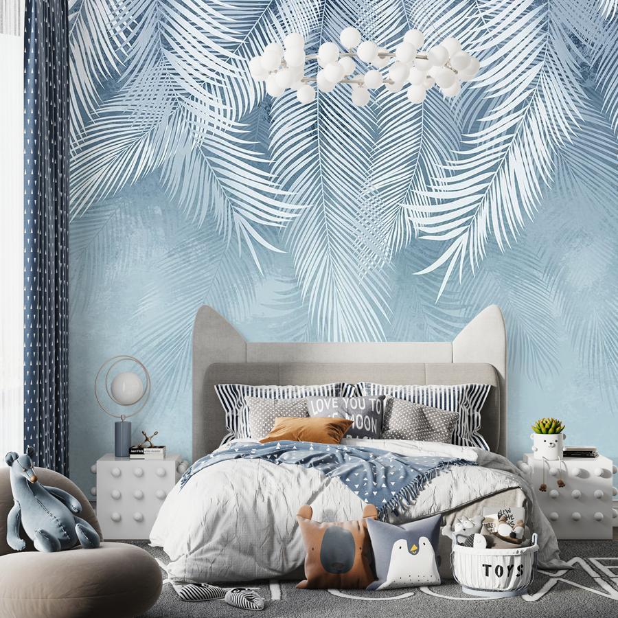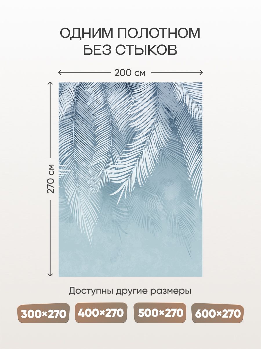 Бесшовные фотообои Листья свисающие голубые, артикул 14-337, прекрасно подойдут к любому помещению: в гостиную, в спальню, в кухню или в детскую и украсят ваш интерьер. Купить фотообои в интернет магазине MasterFresok можно в нескольких типовых размерах: