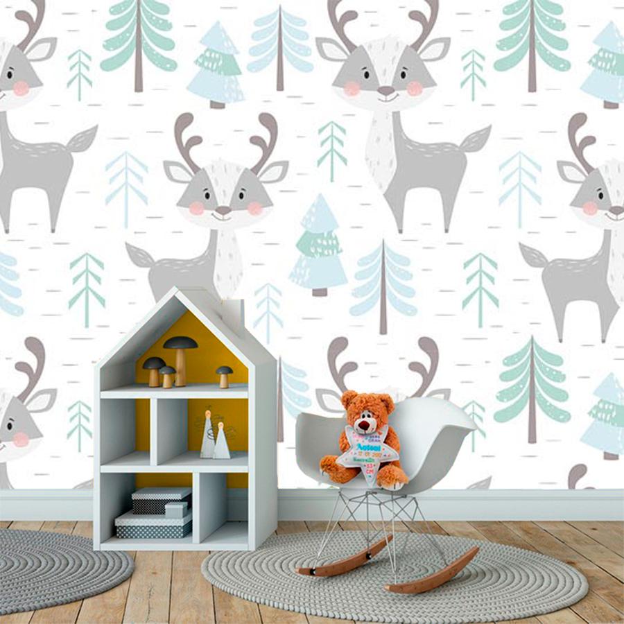 Бесшовные фотообои Олени среди елочек, артикул 12-681, прекрасно подойдут к любому помещению: в гостиную, в спальню, в кухню или в детскую и украсят ваш интерьер. Купить фотообои в интернет магазине MasterFresok можно в нескольких типовых размерах: