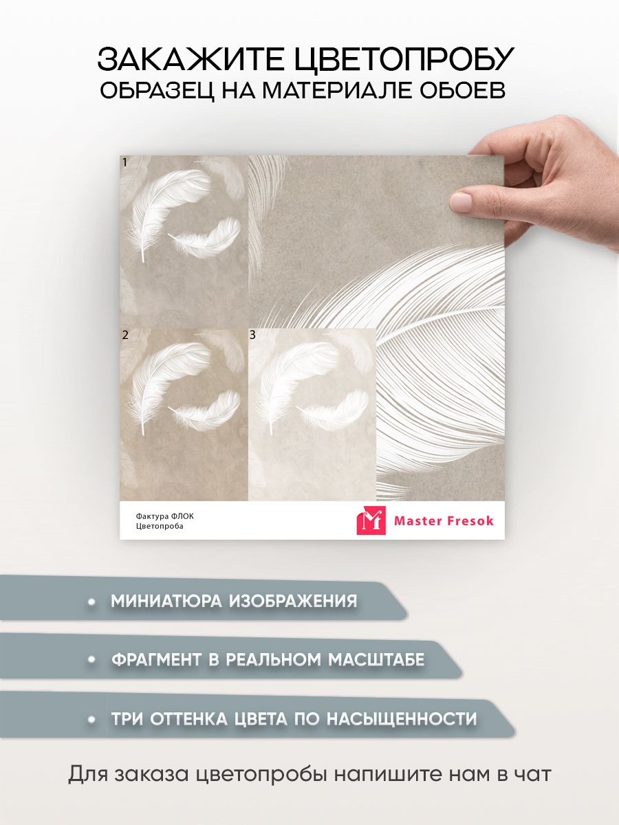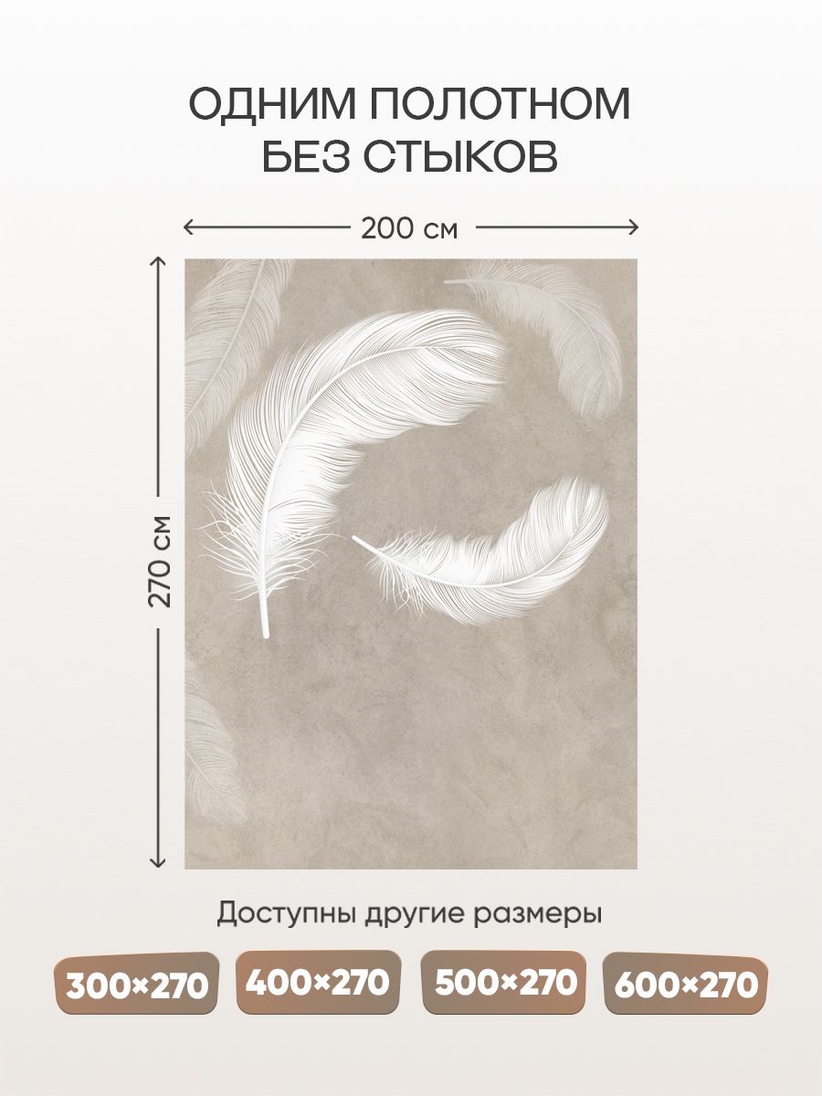 Бесшовные фотообои Белое перышко, артикул 14-302, прекрасно подойдут к любому помещению: в гостиную, в спальню, в кухню или в детскую и украсят ваш интерьер. Купить фотообои в интернет магазине MasterFresok можно в нескольких типовых размерах: