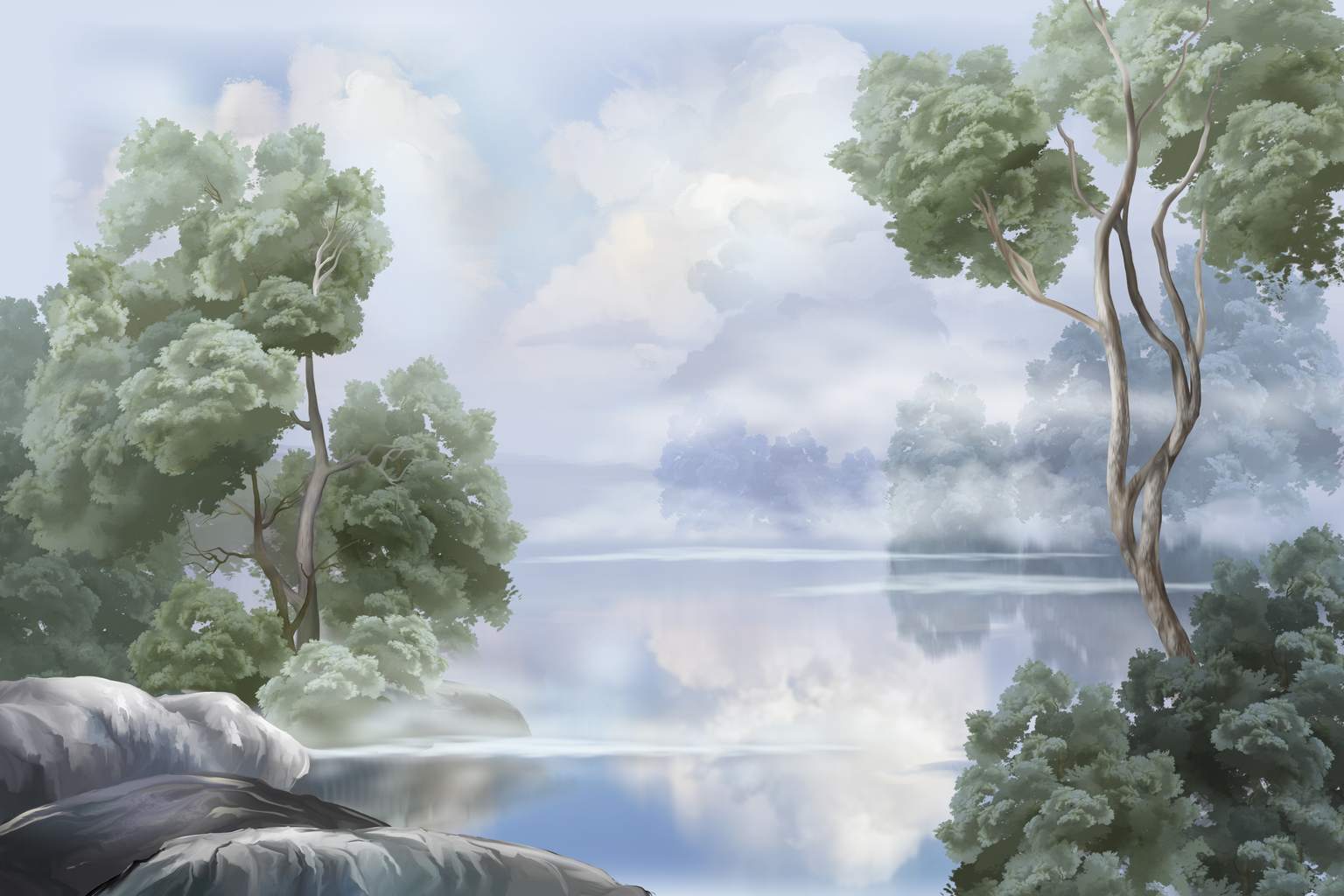 Фотообои Пейзаж деревья над водой 13-975-S-Холст