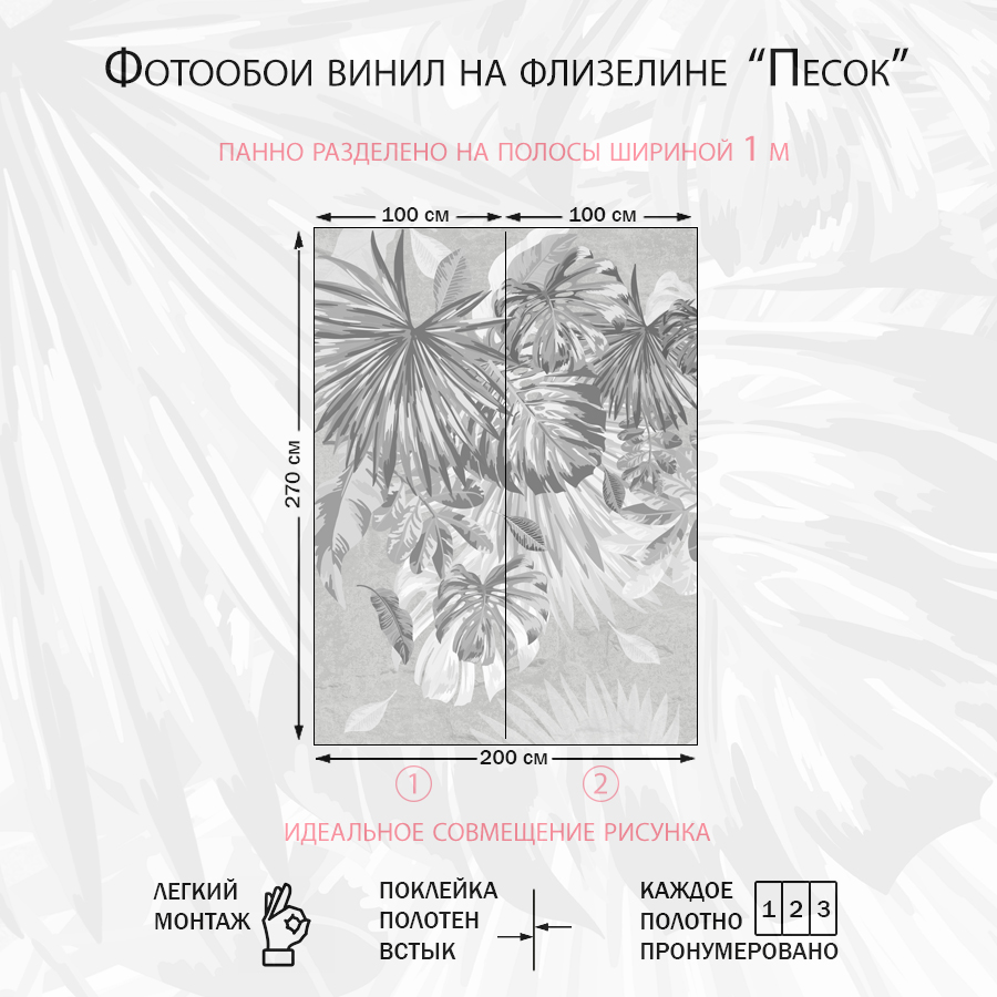 Фотообои Тропические листья на сером фоне 7-952-S-Песок