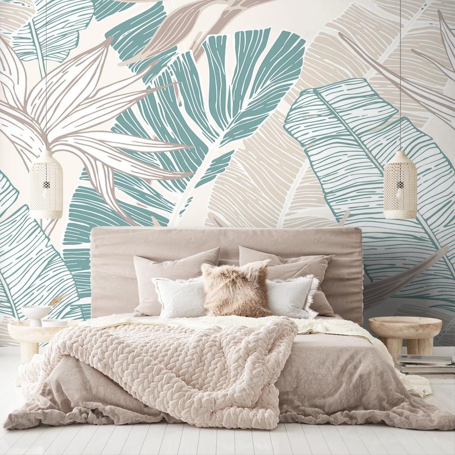 Бесшовные фотообои Мятные тропические листья , артикул 9-1391, прекрасно подойдут к любому помещению: в гостиную, в спальню, в кухню или в детскую и украсят ваш интерьер. Купить фотообои в интернет магазине MasterFresok можно в нескольких типовых размерах: